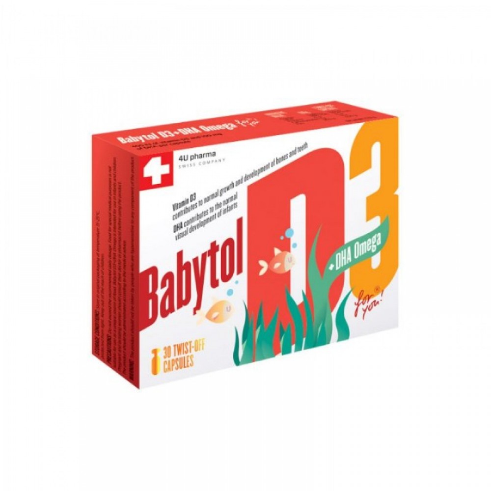 Babytol D3+OMEGA je dodatak ishrani namenjen za pravilan razvoj mozga, kognitivnih i mentalnih funkcija, za normalan razvoj vida, oštrine vida i funkcije oka deteta, kao i za jake i čvrste bebine kosti i zube.